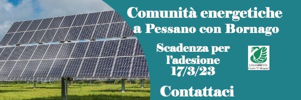 Il circolo Legambiente “Il Molgora” di Pessano con Bornago ha accolto favorevolmente l’intenzione del Comune di aderire al bando regionale per costituire una o più CER – Comunità Energetica Rinnovabile nel nostro paese.