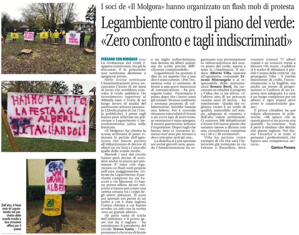 Chiediamo che il Sindaco interrompa il taglio e che ascolti le nostre istanze. Abbiamo fatto formale richiesta di un incontro e il Sindaco ci ha risposto che ci riceverà dopo le festività natalizie. Siamo fiduciosi che il confronto avverrà in un clima di cordialità e collaborazione ma purtroppo i tagli ci sono già stati 🙁